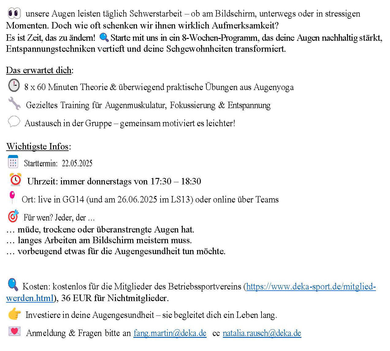 DekaSport e.V. informiert