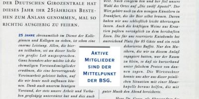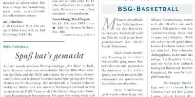 Die Betriebssportgemeinschaft der DGZ feierte das 25jährige Jubiläum. Man war gespannt, was das Fusionsjahr mit sich bringen würde.