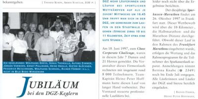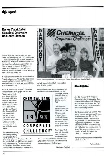 Das Jahr 1993 stand ganz im Zeichen der Läufer: Zum ersten Mal wurde der „Chase-Lauf“ durchgeführt. Damals noch unter der sperrigen Bezeichnung „Chemical Bank Corporate Challenge“ 527 Läufer gingen an den Start, darunter ein „Mixed-Team“ mit 4 DGZ-Läufern.