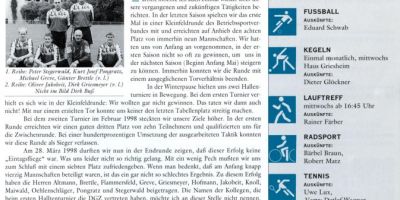1999 gab es dann in der „INKOM“ einen Überblick über alle Aktivitäten der „Sportgemeinschaft der DGZ DekaBank“. Zurecht wurde ein neuer Name für die Betriebssportgruppe gesucht. Zur Belohnung gab es noch „D-Mark“ und Golf war noch „Zukunftsmusik“.