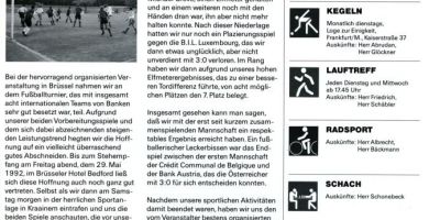 1992 trat das DGZ-Fussballteam beim internationalen Bankenturnier in Brüssel an.