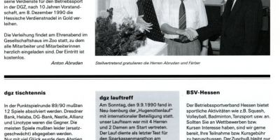 1990 feierte der langjährige Betriebssportvorsitzende Friedel Reischmann seinen 60. Geburtstag und verabschiedete sich in den „aktiven“ Ruhestand, in dem er regelmäßig in der „Wandergruppe Senioren“ aktiv war bzw. heute noch ist.